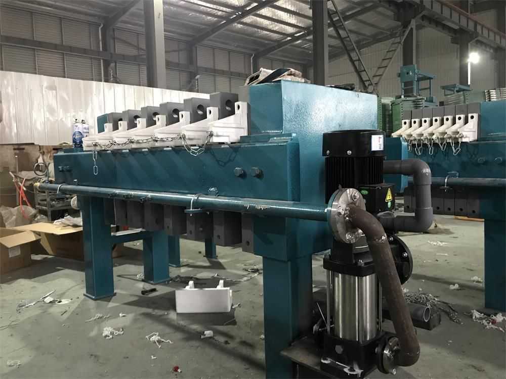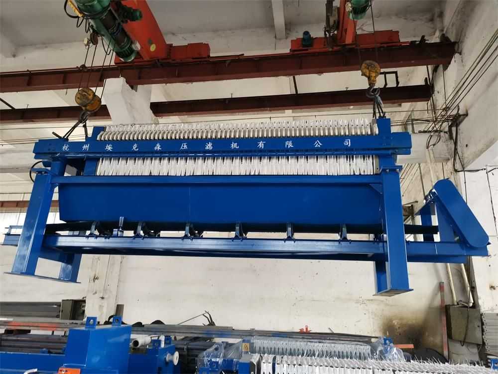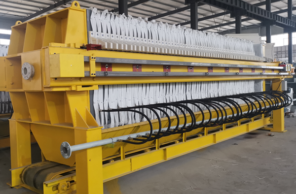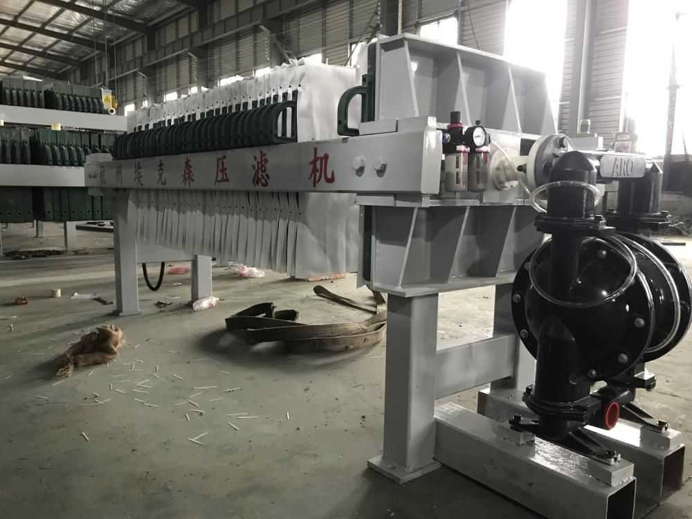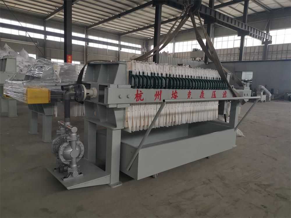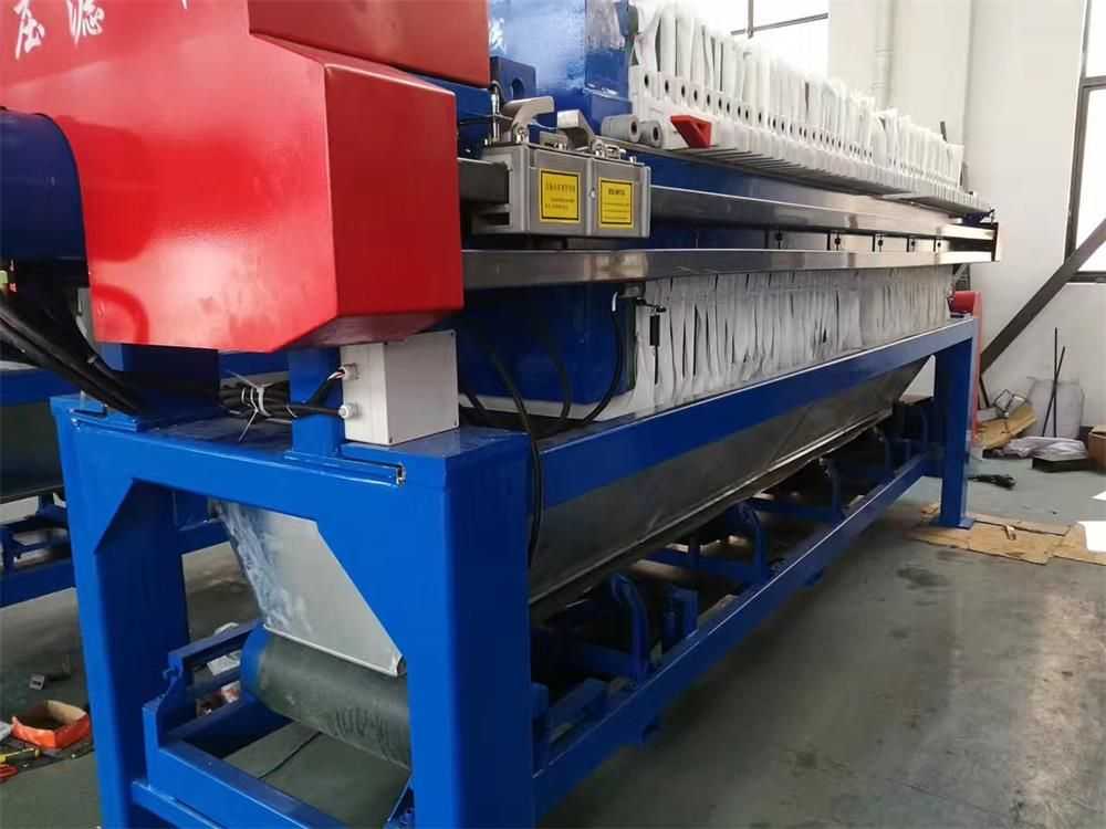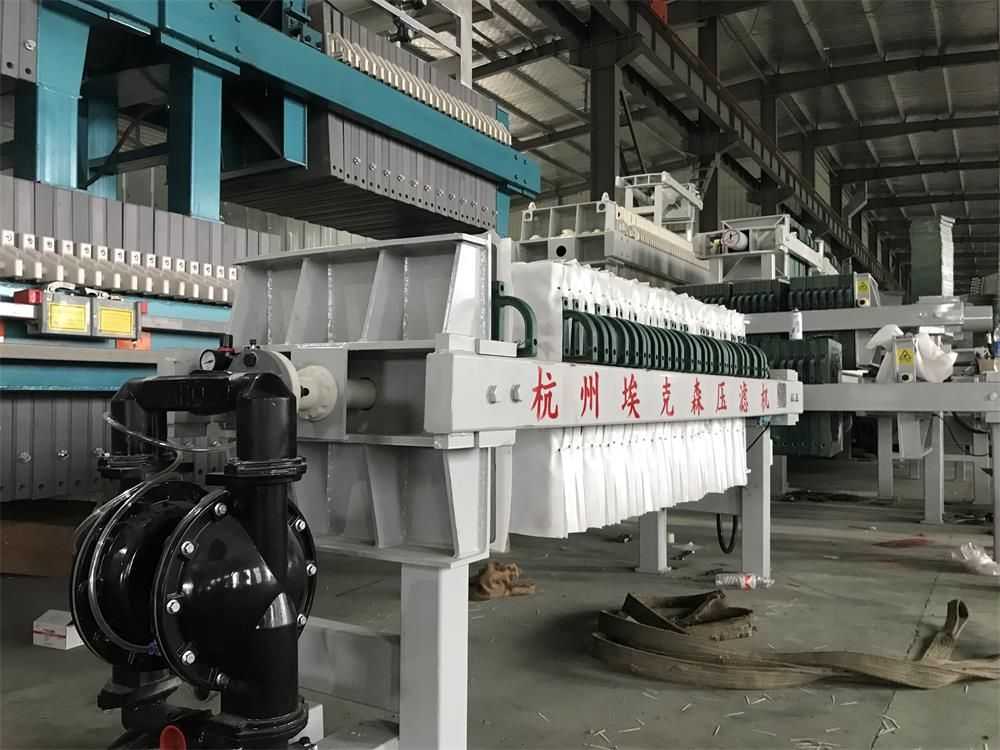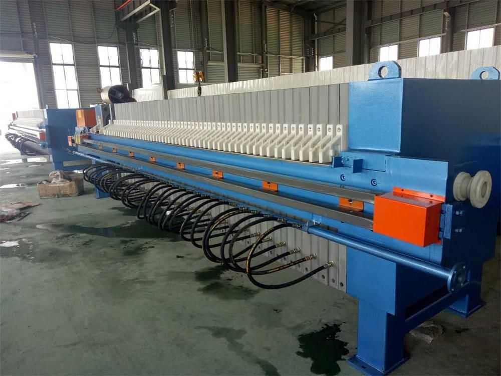 隔膜壓濾機和常規(guī)箱式壓濾機的主要區(qū)別在于,在濾板的兩側都增加了兩個彈性膜(復合橡膠膜是一個整體式膜。在操作期間,當進料完成時,將高壓流體介質(zhì)注入膜中,并使整個膜膨脹以過濾濾餅,以進一步使濾餅脫水,這是壓力過濾。在隔膜壓濾機運行期間,液壓系統(tǒng)使用液壓油作為壓力載體來傳遞內(nèi)部壓力。